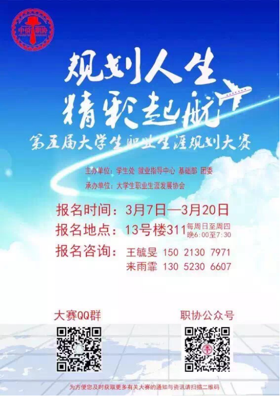 为传播和普及大学生职业生涯规划理念,促进我院大学生就业工作,提升毕业生职业竞争力与就业满意度,我院第五届大学生职业生涯规划大赛于本周正式启动。 此次大赛由我院基础部、学生处、就业办、团委共同筹办,大学生职业生涯发展协会协办,赛程共分培训初选、复赛选拔、决赛三个阶段组成,培训初选阶段将按照大赛要求对参赛学生进行职业生涯规划模块澄清、作品制作技巧等相关内容的培训,初选确定30%左右的优秀作品进入复赛,复赛中的优胜者将进入4月下旬举办的学院决赛。 在参赛要求上,此次大赛较之往届做出部分调整,参赛学生除提交规范的《职业生涯规划书》、个人答辩准备外,另外须提交个人风采VCR一份,更好展示个人职业生涯规划特点。 决赛结束后,大赛组委会将筛选出优秀作品,推荐2-5名优秀选手代表学院参加5月份的上海市民办高校大学生职业生涯规划大赛决赛和上海市大学生职业生涯规划大赛。