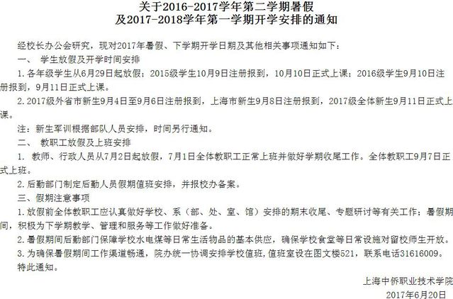 转发:关于2016-2017学年第二学期暑假放假安排的通知