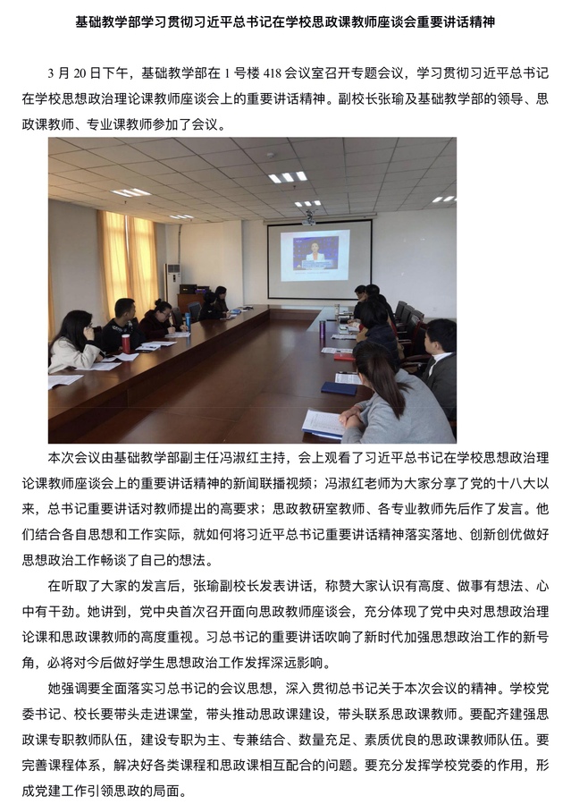 基础教学部学习贯彻习近平总书记在学校思政课教师座谈会重要讲话精神