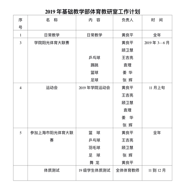 基础部2018——2019第二学期体育教研室工作计划