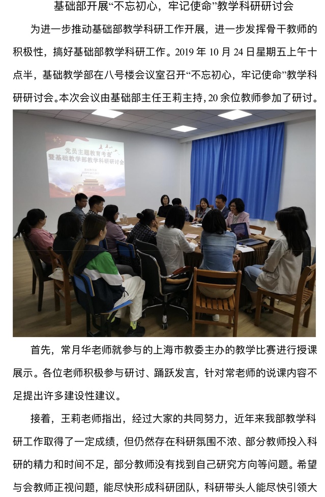 基础部开展“不忘初心,牢记使命”教学科研研讨会