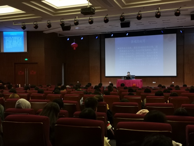 为进一步贯彻落实中央和上海市委有关做好高校抵御和防范宗教渗透工作,为进一步推动师生深化对当前国际国内形势的认识,准确把握当下发展所面临的形势,学校党委高度重视意识形态工作,紧紧围绕立德树人的根本任务,发挥课堂主渠道作用,把马克思主义宗教观作为学校思想政治理论课教学的重要内容,并通过举办报告会、专家讲座形式,落实好我校抵御和防范宗教渗透工作。2019年11月13日,中侨职业技术学院“金山大讲堂”在第二讲《世界历史中的宗教斋戒与政治》一号楼大礼堂正式开讲。