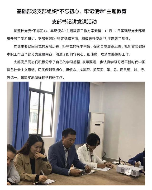 基础部党支部组织“不忘初心、牢记使命”主题教育支部书记讲党课活动