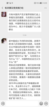 应市教卫工作党委及学校党委“四史”学习教育工作指示,5月28日下午,机关五党支部开展了主题党日活动——支部书记讲党课。 会上,王莉书记以新中国成立70周年经济社会发展伟大飞跃为主题讲了一堂深刻的党课。党课总共分为四个部分:一、新中国这样走来;二、70年的经验启示;三、建国70周年十大成就;四、壮丽70年 奋斗新时代。通过党课的学习,我们一起回顾了新中国成立以来所经历的重要时刻,回顾了建国以来的十大成就,从中学习了很多经验和启发。让我们认识到“精诚团结,共同奋斗”才是新时代向前奋斗的最美音符,今后在工作岗位上要更加发挥自己的主动性、积极性、创造性。 最后,大家还围绕中国共产党为什么“能”,马克思主义为什么“行”,中国特色社会主义为什么“好”三个话题进行了交流讨论。