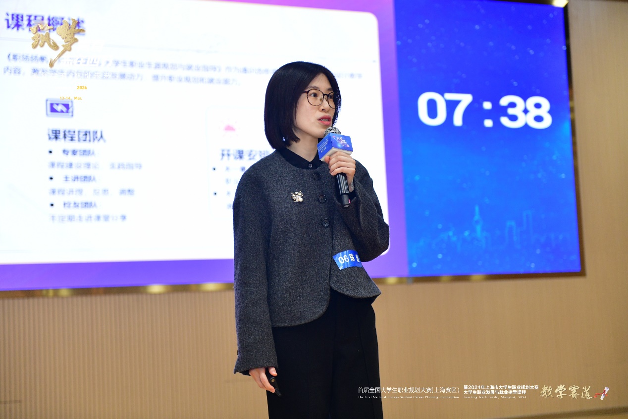 314日,首届全国大学生职业规划大赛(上海赛区)暨2024年上海市大学生职业规划大赛大学生职业发展与就业指导课程教学赛道的比赛圆满落幕。经过多轮激烈角逐,陈曦老师凭借出色的表现,最终荣获教学赛道职教组比赛金奖。