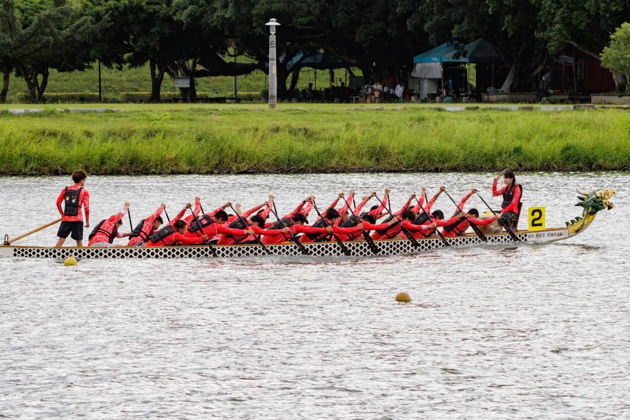 迎风斗浪,虽败犹荣——运河之上展青年风采 9月23日,龙舟交流赛正式在新北市微风运河拉开战幕,来自两岸四地的12支劲旅齐聚一堂,展开500米直道竞速的激烈角逐。比赛当日,台风“桦加沙”为赛事带来了巨大挑战。在预赛中,我校龙舟队因风浪影响不幸偏离航道,遗憾未能晋级半决赛。 然而,挫折并未击垮中侨青年的斗志。在随后的排名赛中,队员们迅速调整心态,重整旗鼓,以破釜沉舟之势奋力划行,最终取得的优异成绩甚至比决赛冠军队伍还要快出整整1秒!这一成绩,也刷新了在淡水河水系上进行500米竞速的最快纪录,用实力证明了队伍的强大潜力。