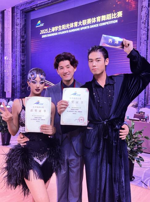 本届赛事由上海市教育委员会、上海市体育局联合主办,是近五年来规模最大、竞技水平最高的学生体育舞蹈专业赛事,共吸引来自全市12个区及外省市86所高校的1000余名选手参赛。 荣誉时刻:见证拼搏成果 在为期两天的比赛中,我校国标舞队队员以精湛的技艺和出色的表现,在众多参赛队伍中脱颖而出: - 王馨怡(食品药品学院)荣获高校组伦巴/恰恰双项组第一名、恰恰单项B组第一名 - 顾佳衔(食品药品学院)荣获高校组恰恰单项A组第一名、伦巴/恰恰双项第三名
