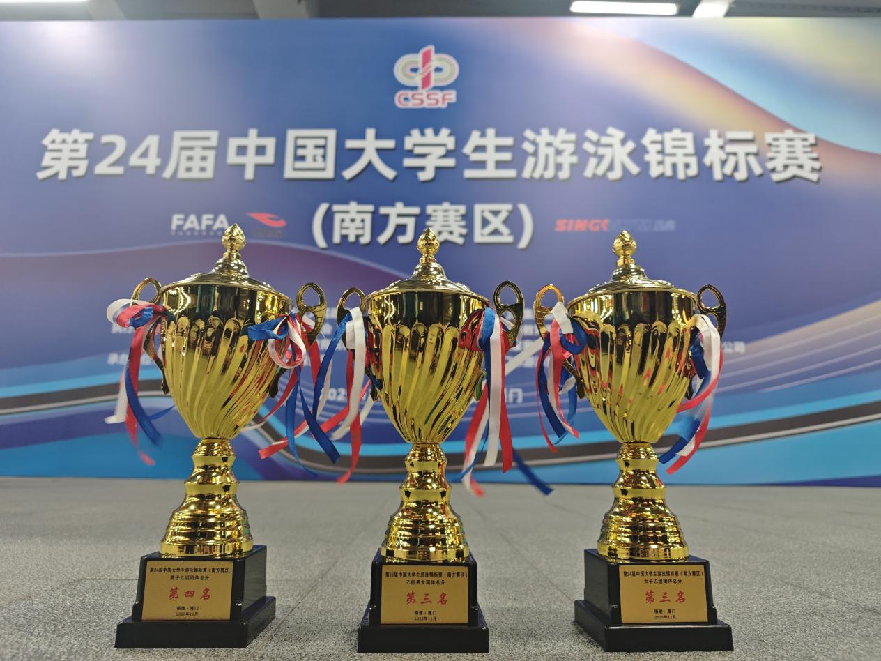 11月9日,第24届中国大学生游泳锦标赛(南方赛区)在厦门奥林匹克体育中心游泳馆隆重开幕。本次赛事由中国学生体育联合会主办,吸引了来自105所高校的800余名运动员参加。我校游泳队首次亮相全国赛场,斩获4金、2银、4铜,打破一项赛会记录,并夺得团体总分第三名,创造了我校历史性的佳绩!